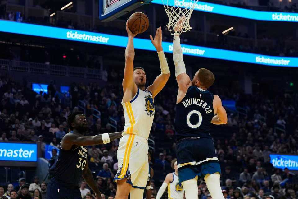 勇士:波尔津吉斯20分4篮板,波杰姆斯基25分10篮板,桑托斯17分8助攻,小佩顿12分,梅尔顿12分。